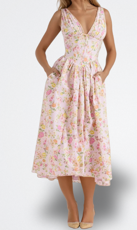 Ponte el vestido Aurora y deja que su suave estampado floral te envuelva en una elegancia de ensueño. Con su escote en pico pronunciado y cintura entallada, se siente como un abrazo cálido—ideal para un brunch al sol, un paseo junto al río o una cena romántica sin esfuerzo. Cada giro del vestido susurra feminidad atemporal, haciéndote sentir radiante, segura y sencillamente encantadora.