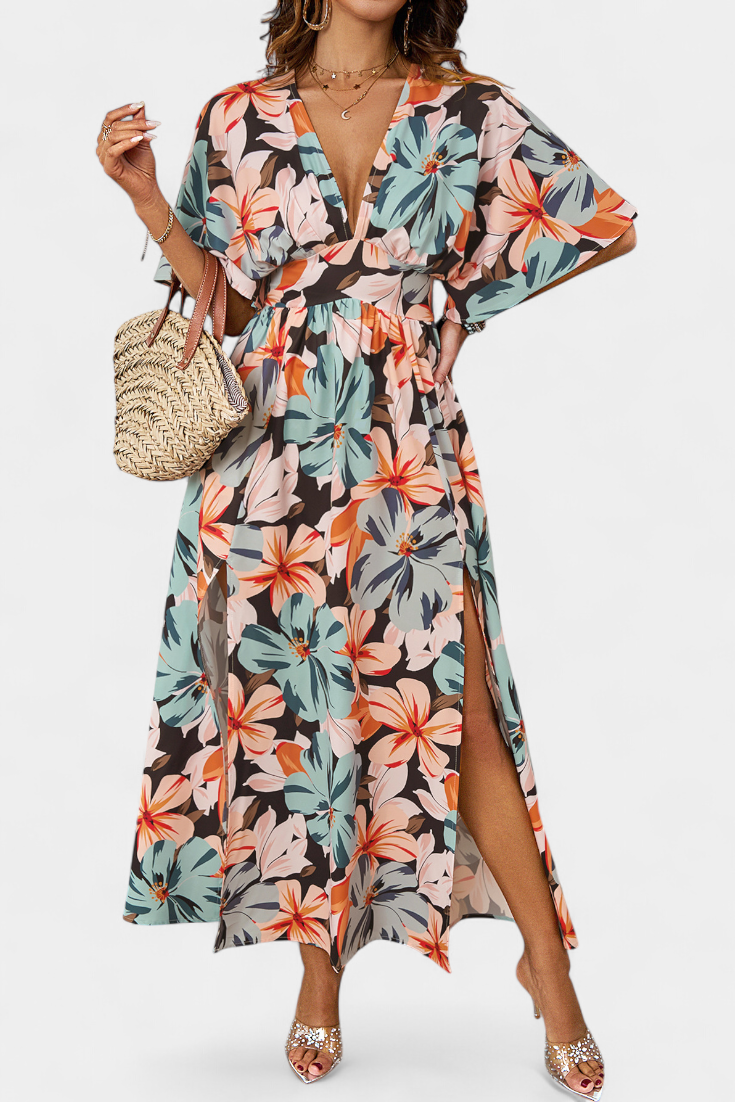 Julie | Vestido Largo con Estampado Floral y Escote Cruzado