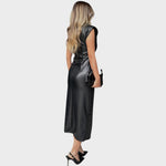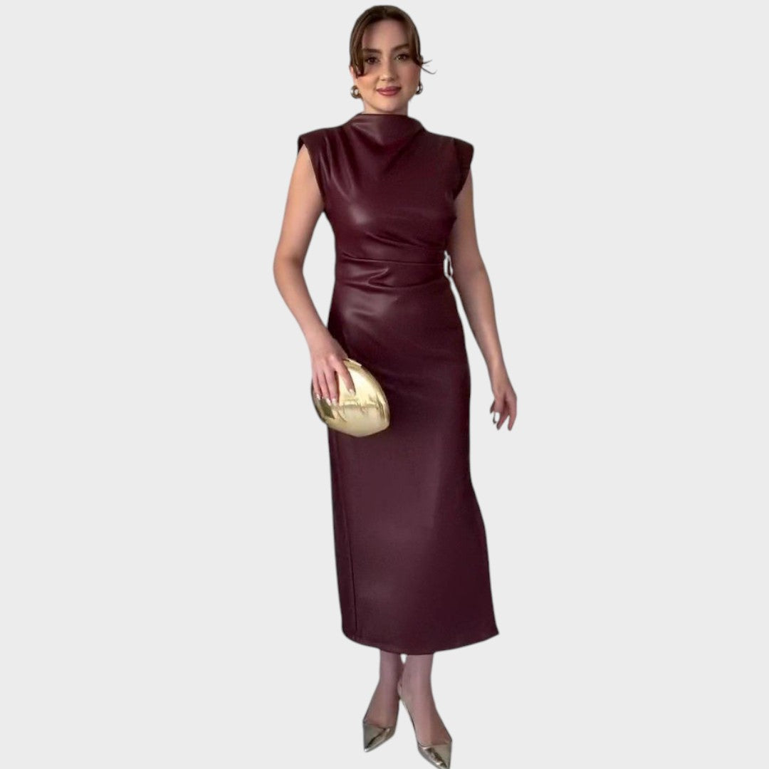 El vestido BRAZELLA es la definición de elegancia moderna y seguridad. Confeccionado en un tejido efecto piel de acabado suave y sofisticado, se adapta al cuerpo realzando la silueta de forma natural. Su diseño estructurado, con drapeado lateral y detalle metálico, aporta un toque distintivo y femenino que marca la diferencia. El corte midi con abertura frontal estiliza la figura y añade sensualidad sin perder elegancia, mientras que los hombros marcados elevan el look con un aire contemporáneo y poderoso.