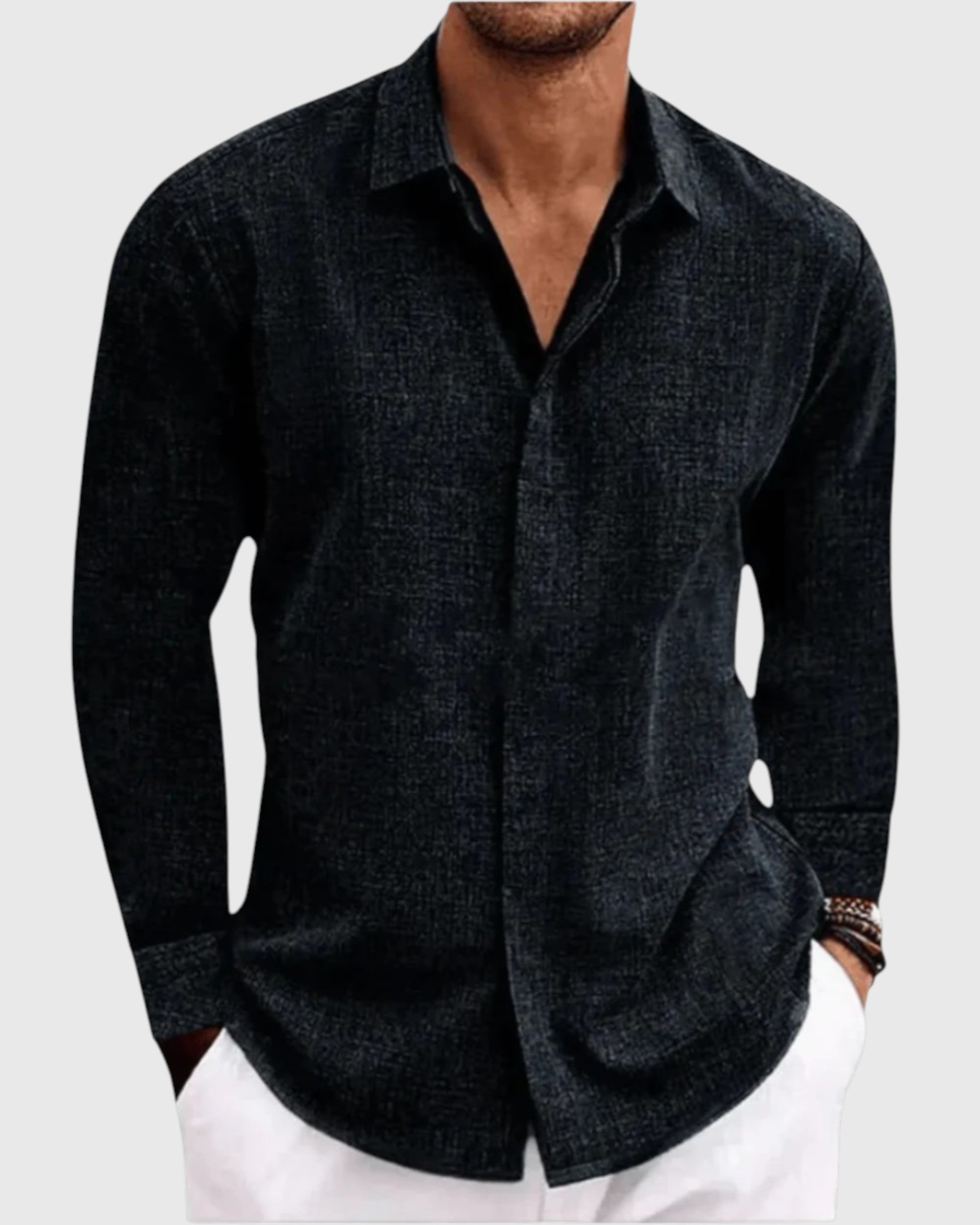 La camisa Álvaro está pensada para hombres que aprecian la moda refinada con un toque informal. Confeccionada con una mezcla de lino de alta calidad, ofrece un corte cómodo pero elegante, ideal para una salida relajada, un look superpuesto cuidado o un atuendo business casual moderno.